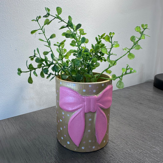 Ceramic with Bow - Perfect size for holding a small plant or pencils!