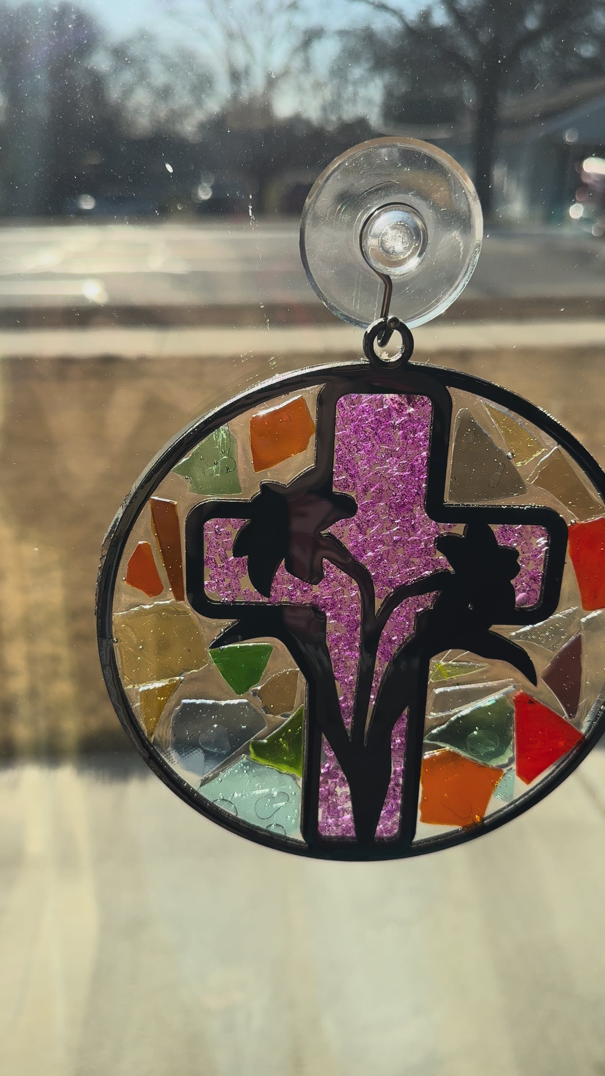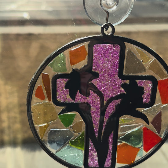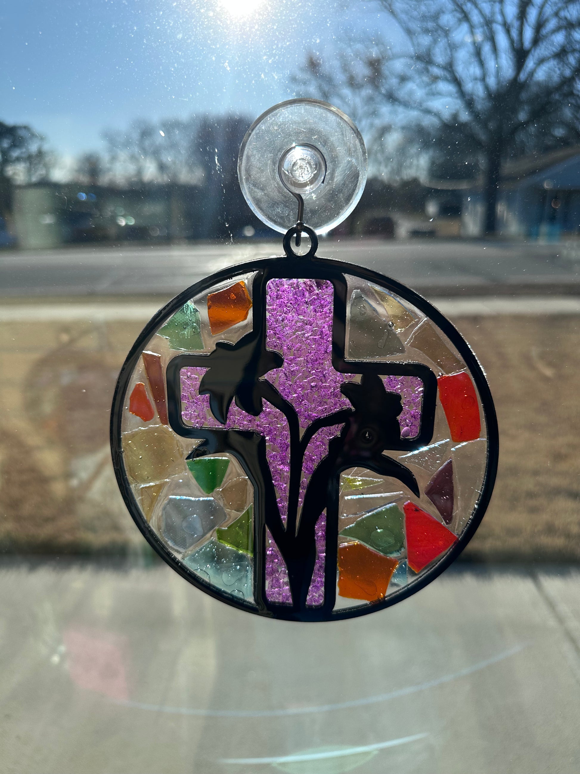 We have a large selection of crushed glass available for you to use to fill in your suncatcher.