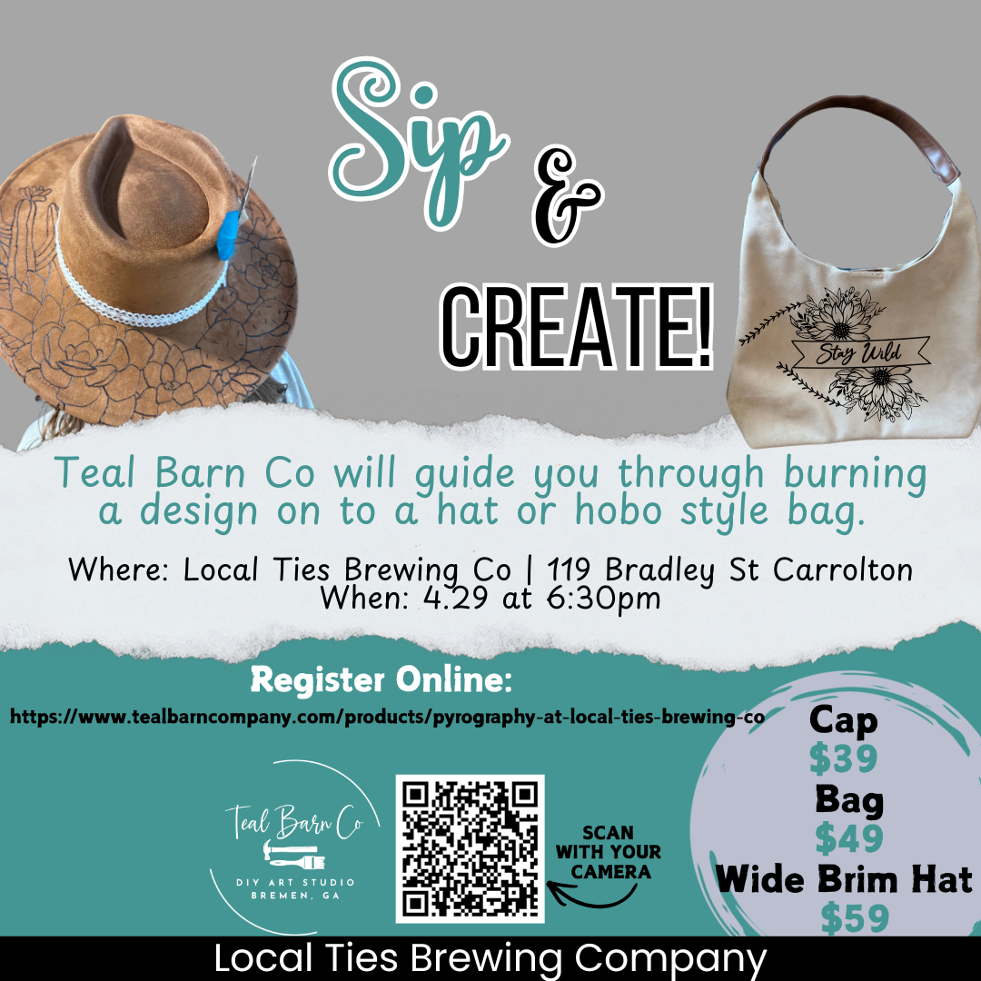 Get crafty with a craft beer in hand! Price includes everything you need to burn a hat or bag, plus your first glass of beer. (Burners will be for workshop use only & will not go home with you)